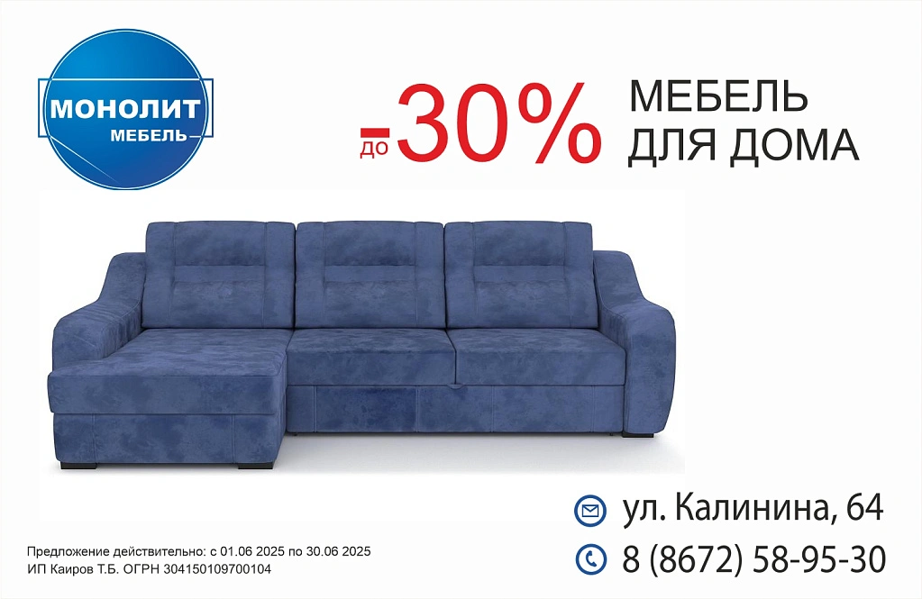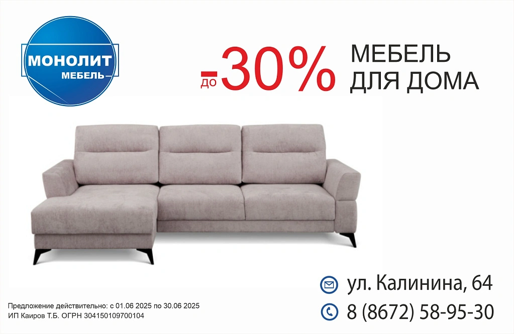 до 30% на мягкую мебель и мебель для дома в Монолит Мебель